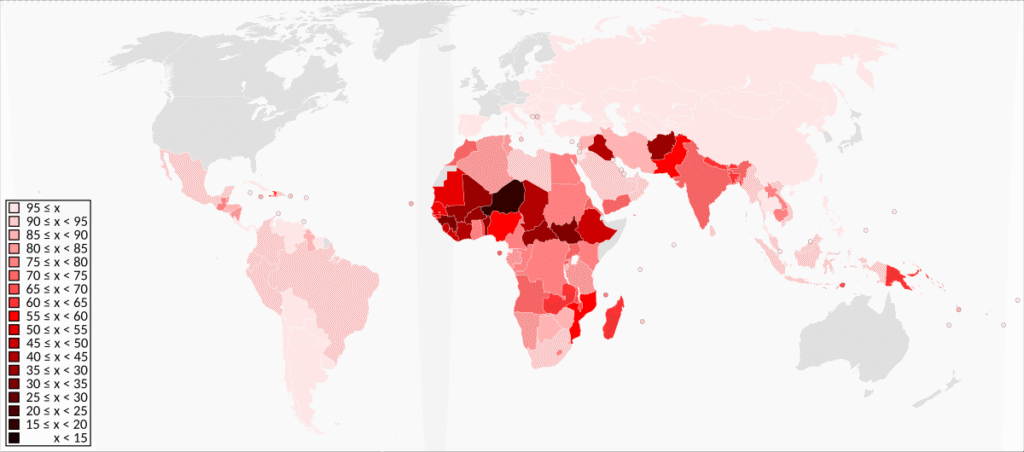 GLOBAL MAP OF LITERACY RATE IN 2025.